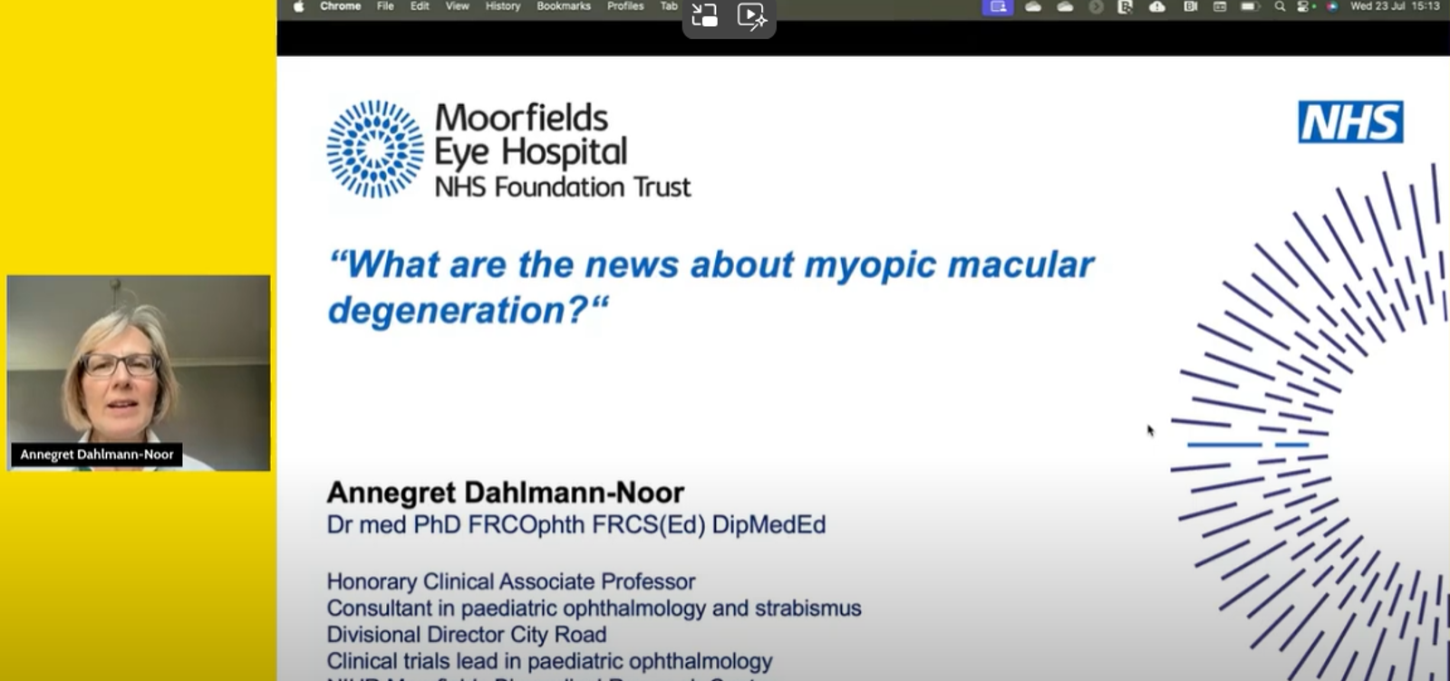 Description: Dr Annegret Dahlmann-Noor shares the latest research on myopic macular degeneration, including current treatments and future developments.