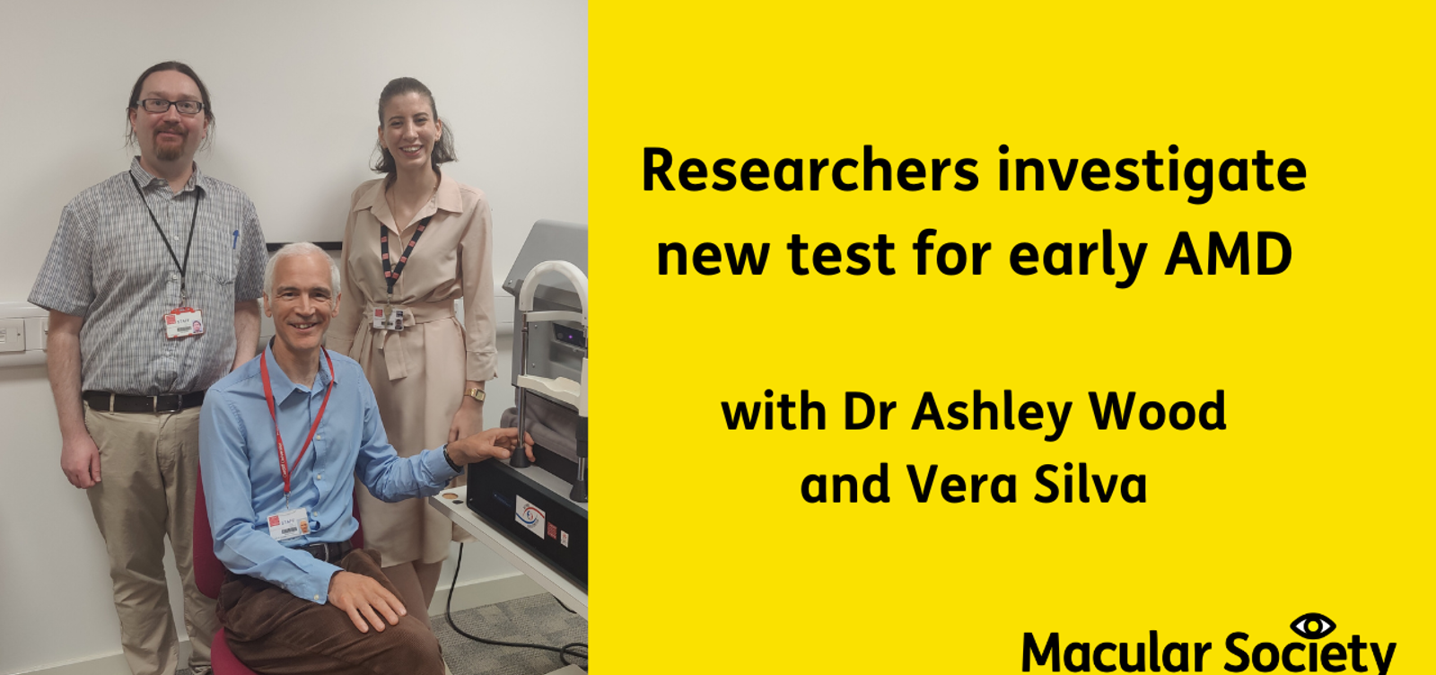 Tuesday 15 October 2024Dr Ashley Wood and Vera Silva from Cardiff University join our My Macular and Me webinar to discuss new research into early age-related macular degeneration (AMD). Dr Wood’s team is developing technology to detect early changes in vision, especially difficulties adjusting to low light, which could help diagnose AMD sooner.